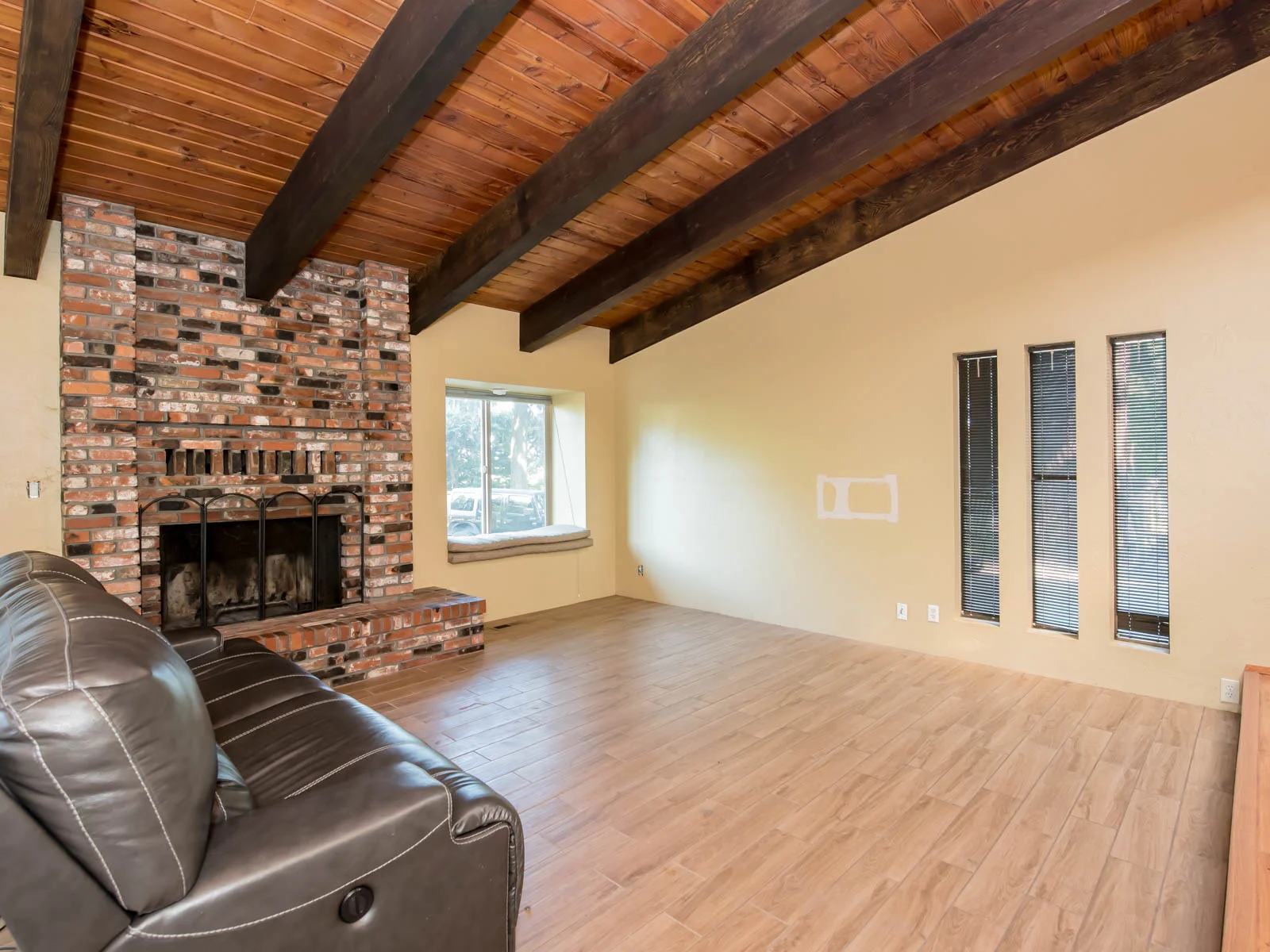 Wood beamed vaulted ceilings and gorgeous brick fireplace feature in this time capsule, a perfect opportunity for a new owner to continue to preserve or personalize! Big ticket items include a newer roof in 2011, double-paned windows throughout the majority of the home and newer furnace. Creature comforts, like an owners’ suite and newer hot tub (2015) round out many of the best things to like about this abode.